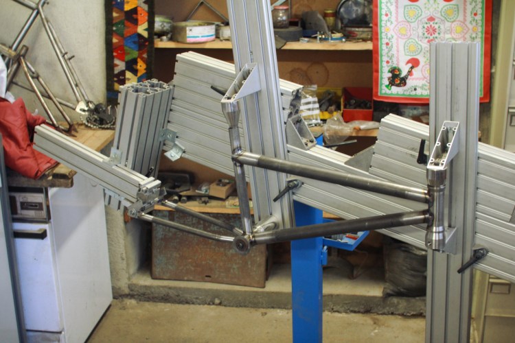Marbre de soudure pour cadres de vélo.